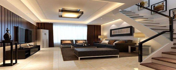4、复式吊顶吊顶是提高我们整个空间的档次的利器,所以复杂装修中可以从吊顶方面找到装修突破点,一些细节都可以让空间大放光彩,当然,我们也可以从吊顶上面做些文章,选择由几条横木搭配出来的顶部作为吊顶,然后选择合适的水晶灯搭配,这样空间的高度感被降低了,而且空间装饰出来很大气,美观。复式吊顶选择灯具时要先考虑复式顶部的承重能力,然后再选择合适的吊顶。