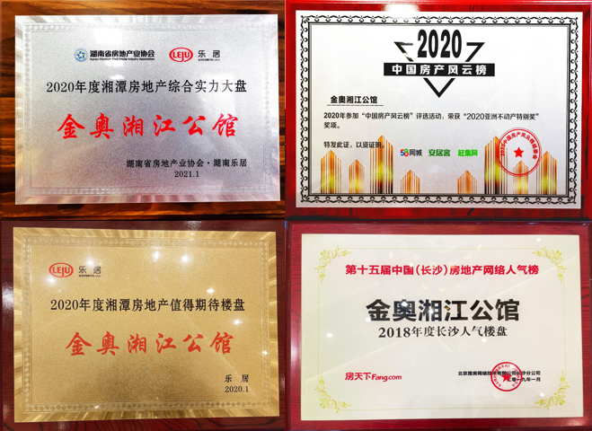 金奥湘江公馆荣获:“2020年乐居年度长沙房地产综合实力大盘““2020年安居客20年亚洲不动产特别奖”。销量和售价一度成为九华片区热盘榜首,吊打竞品逆袭长沙南。