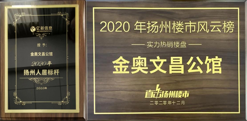 扬州金奥文昌公馆荣获:“2020年扬州人居标杆”“2020年实力热销楼盘”,已连续三年夺得扬州楼市双冠王,2021年第一个月销售套数排名第一,单日劲销壹亿。
